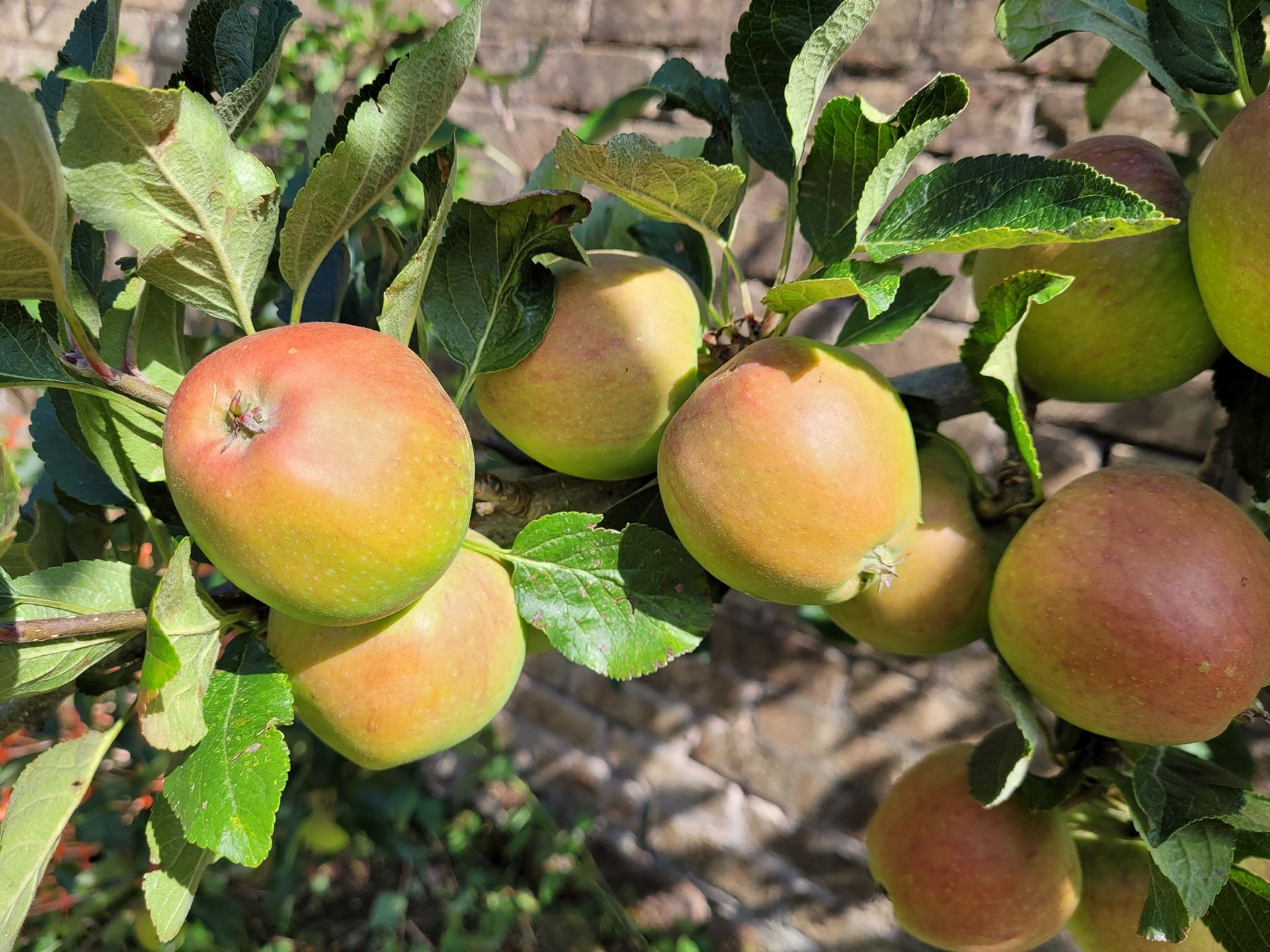 The Scottish fruit trees originally planted have matured and now produce delicious apples,